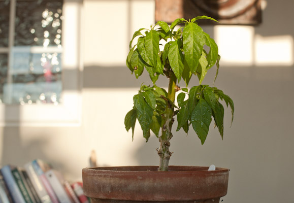 Above is my trusty Orange Scotch Bonnet that has been going strong since 2010. This old boy has special privileges due to his age so he’s spending the winter in the conservatory (rather than the chilli house). I gave him a bit of a trim back in the autumn and there’s been no sign of any new growth yet but it’s looking reasonably healthy.