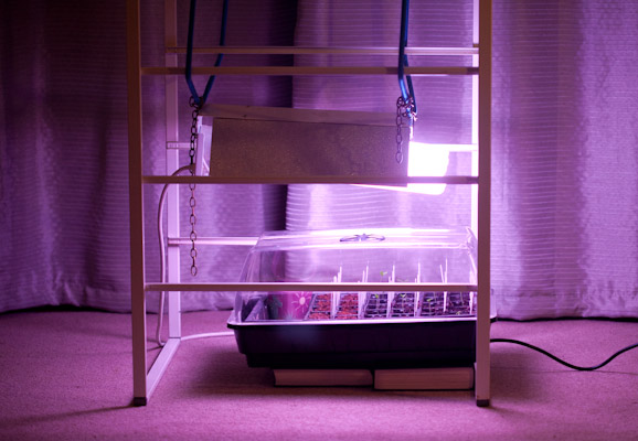 In the meantime, to try and combat the legginess, I’ve decided it is time to get them under my 125Watt Nuturlite. I’ve started off with the light about 25cm above the seedlings. I’ll gradually lower this by a few cm over the next few days to avoid scorching/shocking the plants.